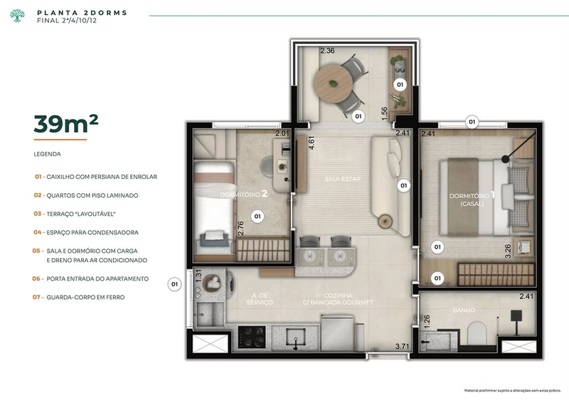 • apartamento 2 dormitórios